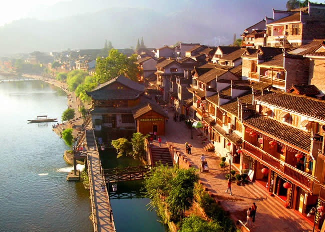 湖南鳳凰古城始建于清康熙四十三年〔1704年〕,歷經(jīng)300多年的風雨滄桑,古貌猶存,F(xiàn)東門和北門古城樓尚在。城內(nèi)青石板街道,江邊木結(jié)構(gòu)吊腳樓,以及朝陽宮、古城博物館、楊家祠堂、沈從文故居、熊希齡故居、天王廟、大成殿、萬壽宮等建筑,無不具古城特色。古城以古街為中軸,連接無數(shù)小巷,溝通全城。古街是一條縱向隨勢成線、橫向交錯鋪砌的青石板路,自古以來便是熱鬧的集市,如今更加生機勃勃。鳳凰古城的標志性建筑之一虹橋,原名臥虹橋,歷史悠久。鳳凰古城北門城樓本名“碧輝門”,采用紅砂條石筑砌,既有軍事防御作用,又有城市防洪功能,是古城一道堅固的屏障。鳳凰古街兩邊建筑飛檐斗拱,店鋪中陳設(shè)著琳瑯滿目的民族工藝品,濃濃的古意古韻,透出古街深厚的民族文化底蘊。