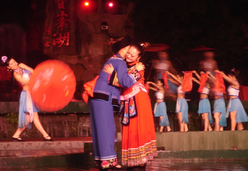 姑娘出嫁,為女人一生中最大的喜事,本應(yīng)充滿幸福、歡樂的氣氛。然而,舊時湘西、湘南、鄂西、川西(成都等地)、黔東(銅仁、凱里一帶)諸地,卻流行著一種與之完全相反情調(diào)的古老婚俗——“哭嫁”。也就是在姑娘“出閣”之前,不但新娘本人哭得很傷心,像淚人一般;而且,新娘的母親、姐妹以及姑媽、姨媽、舅媽及其他交往較多的女友,都要陪著新娘哭。湘西土家族哭嫁的風(fēng)俗尤為普遍、濃厚,不但哭嫁的時間較長(少則十來天,多達(dá)個把月),而且哭嫁歌也保存得古樸、完整。 姑娘出嫁為什么要哭?哪有那么多的東西可哭?這是一種蘊(yùn)含甚為豐厚的人生禮俗,也是一種饒有興趣的婚俗事象。 俗話悅:“人不傷心不落淚!惫媚锍黾拗砸,是因?yàn)樵谂f式婚姻制度下,女孩(尤其是勞苦大眾家庭的女孩)總是作為犧牲品“拋”(賣)給夫家的,她們的身心受到極大傷害。因此,湘西等地的女孩在出嫁之前要哭泣,要呼號,哭嫁歌就是感情發(fā)泄的最好表現(xiàn)方式。 哭嫁的源起 哭嫁的風(fēng)俗,不知道起源于什么時候。戰(zhàn)國時期,趙國的公主嫁到燕國去作王后,她的母親趙太后在臨別時"持其踵,為之泣,祝曰,必勿使返。"大約就是后來長盛不衰的哭嫁風(fēng)俗的濫觴了。 這種風(fēng)俗,直至清末還盛行于四川農(nóng)村中,隨地區(qū)變化而大同小異。解放前,聽老人們說,早些時候,沒有嫁而不哭的人家。如果出現(xiàn)嫁而不哭的姑娘,也會被鄰里看作沒有教養(yǎng)的人,傳為笑柄;相傳有出嫁姑娘不哭而遭母親責(zé)打的事,這位母親當(dāng)然算得上是入流導(dǎo)演了。 舊時宣講故事中,有花轎臨門,父親強(qiáng)令哭《迎風(fēng)罵媒歌》的情節(jié),可知哭嫁是有歌詞的,帶有表演性質(zhì),原是用來渲染氣氛,以悲襯喜;不過,因?yàn)榛橐鍪前k的,真哭真罵的也不會少。 抗日戰(zhàn)爭后期,風(fēng)氣較開,哭嫁之風(fēng)已不盛行,而老人們卻還在津津樂道,哭的方式是,從婚期前一個月的首日起,入黃昏,姑娘訴哭約一個小時,其聲嗚嗚。十天以后,她的母親加入"陪哭";又十天以后,她的祖母加入陪哭。這家沒有諸姑姊妹,人們說,如果有的話,也應(yīng)當(dāng)加入陪哭行列的。 哭嫁在川西叫"坐堂"。清代吉道人《味蔗軒隨筆·坐堂詞》云:"婚姻之禮,各省風(fēng)俗不同。然酌禮準(zhǔn)情,各省亦大同小異。凡男家娶婦先賦之詩,謂之'催妝';女家親串頌女之詞,謂之'坐堂'。坐堂者,女當(dāng)喜期將近之先數(shù)夕,其諸姑伯姊,置酒為女祖餞,各述吉祥之詞,以為頌美,女則申己之意以答。女左右更有少女,則隨而嫻習(xí)者也。其詞要多鄙俚,然有音韻凄清,風(fēng)格遒勁,如古歌古謠者。羅江明府蔡,微服巡查鄉(xiāng)里,一日行至某處,值有女子歸,諸娣姒咸以諛詞頌女,女申意以答。忽風(fēng)吹句入耳,詞曰:'鳳凰落在桌子上,哪個女兒肯離娘'。一字一轉(zhuǎn),音韻凄其,誰謂天籟之鳴,不在愚夫愚婦耶!"云云。吉道人姓周名際唐,成都人。吉道人記得明明白白,可惜他只記了一句哭嫁詞,難窺全貌。好在舊時坊間叢刻中有《訓(xùn)女哭嫁》一種,可見一斑。這本小書的目錄有《閨聲哭》、《娘訓(xùn)女》、《嫂哭妹》、《哭爹媽》、《哭哥嫂》、《花轎到屋哭》、《哭叔爺》、《哭兄弟》、《哭外公外婆》、《哭舅爺》、《拜香火哭》等等,編次有點(diǎn)凌亂,似乎隨手所記,未經(jīng)文人之手。遙想《詩》十五國風(fēng)未刪之時,大約也不過如此吧! 閨聲哭 娘聽后園鳥雀驚,要聽房中女兒聲。 我娘當(dāng)門苦葛藤,手攀苦葛訴苦情。 我娘苦情苦過了,女兒苦情才起根。 ............ 桔子開花葉子青,陽雀開聲我開聲。 新打銅盆才裝水,新打剪刀兩面青。 娘不開口我開口,娘不開聲我開聲。 當(dāng)門一根木蓮樹,目連樹上掛卷經(jīng)。 一本經(jīng)書背完了,未見我娘來開聲。 虧了我娘睡得穩(wěn),爹媽眼淚貴如金。 哭爹媽 月亮彎彎照華堂,女兒開言叫爹娘。 父母養(yǎng)兒空指望,如似南柯夢一場。 一尺五寸把兒養(yǎng),移干就濕苦非常。 ............ 勞心費(fèi)力成虛恍,枉自爹娘苦一場。 哭兄弟 黑漆茶盤烏木頭,姐姐離娘弟不留。 留到姐姐吃你飯,留到姐姐穿你衣。 兄弟當(dāng)家掙家忙,嫁了姐姐買地方。 上頭買齊潼川府,下頭買齊遂寧鄉(xiāng)。 ............ 這個本子所記是川北的歌詞,以前所見的是川南,吉道人所記的是川西,川東,大約也不會大異的。遺憾的是,該書所記哭嫁詞雖有"只怨媒人莫良心"等語,卻沒有列出"罵媒專目,大約是怕媒人太難堪了吧! 其實(shí),罵媒是哭嫁中必不可少的節(jié)目,也是最具反抗色彩的哭嫁歌詞。舊社會,婦女無婚姻自由可言,由于"三從四德"的束縛,平時對于自己的終身大事幾乎不能置一詞,全由媒人和父母擺布;因此,這登花轎之前的"罵媒",便是難得的發(fā)泄機(jī)會。這早已反映在戲曲和民間說唱等藝術(shù)之中。 以前,川劇《柳蔭記》有《英臺罵媒》一折,英臺罵媒人,言詞激烈,聲色俱厲,充分表現(xiàn)了祝英臺剛烈的性格和反封建精神。她罵道:"提媒婆,更恨她,胡言亂語嘴喳喳......唯愿你,房屋遭火化,田園水推沙。"但這場戲現(xiàn)在卻被刪掉了,五六十年代還有的,全國第一屆戲曲會演的川劇《柳蔭記》也有這一折,是陳書舫演的祝英臺,得了一等獎。現(xiàn)在城里人大約以為媒婆不必罵了,但偏遠(yuǎn)地區(qū)