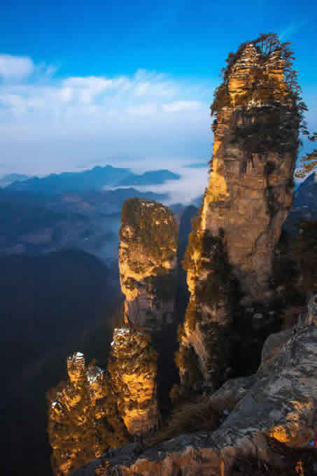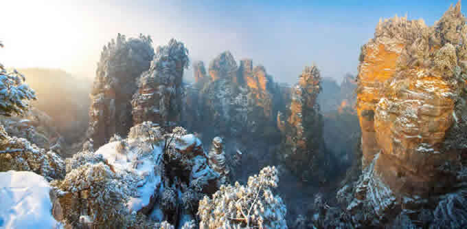 楊家界雪景 作為世界自然遺產(chǎn)武陵源四大核心景區(qū)之一的楊家界景區(qū),地勢(shì)險(xiǎn)要,風(fēng)景絕美,跟張家界、天子山、索溪峪比較,其中的地質(zhì)地貌一部分相同外,又有其獨(dú)特的資源優(yōu)勢(shì),擁有全球罕見(jiàn)的峰墻群奇光。乘坐在舒適的楊家界索道里,可以盡情體驗(yàn)“會(huì)當(dāng)凌絕頂,一覽眾山小”的居高臨下與動(dòng)感,360度暢游夢(mèng)想般的楊家界仙界,俯瞰“近在咫尺”的千山萬(wàn)壑,山舞銀蛇,千嬌百媚的絕美“峰墻”盡收眼底,無(wú)限風(fēng)光在險(xiǎn)峰,數(shù)十道氣勢(shì)如虹的石墻,一排排層巒疊嶂,相對(duì)平行而立,高矮參差不齊,宛如“天然長(zhǎng)城”,真是美輪美奐,絕景天賜,不得不讓人驚嘆大自然的璧山開地之功。