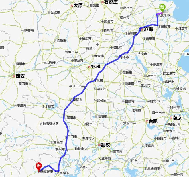 利津縣去張家界自駕車自助游線路圖全程高速):