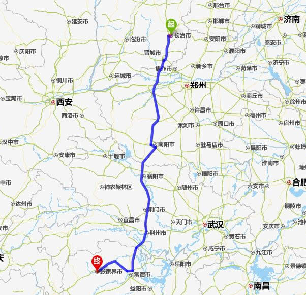 長治去張家界自駕車自助游線路圖全程高速):