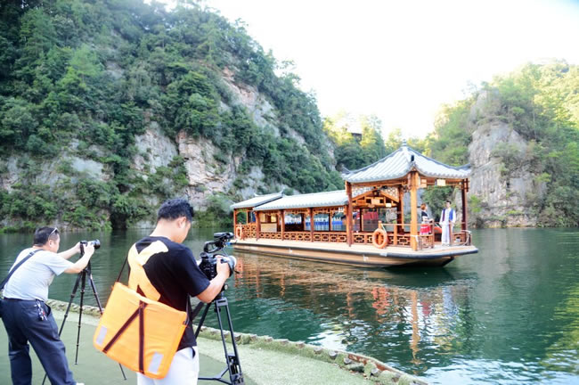 在武陵源期間,攝制組一行先后對武陵源天子山、袁家界、百龍?zhí)焯、寶峰湖、黃龍洞、溪布老街等自然人文景區(qū)景點進行了立體拍攝,屆時武陵源神奇美麗的地質地貌風光、多彩多姿的民俗非遺文化,都將在專題片中得到很好的展現(xiàn)。