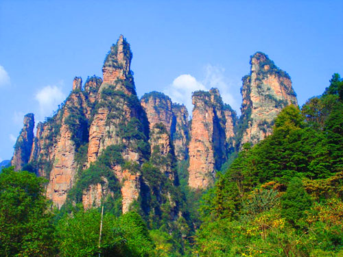 下 午:漫步游覽“中國最美麗的大峽谷”——【金鞭溪】:金鞭溪是天然形成的美麗溪流,因金鞭巖而得名,溪谷植被繁茂,溪水四季清澈,被稱為“山水畫廊”、“人間仙境”。全長7.5公里,步行約2.5小時。沿途游覽金鞭巖、神鷹護鞭、劈山救母、醉羅漢、文星巖、紫草潭、千里相會、水繞四門、觀音送子、師徒取經、長壽泉、蠟燭峰、雙龜探溪、秀才藏書等著名景點;乘環(huán)保車至武陵源門票站。【備注:自駕車的司機只能游覽金鞭溪上游,然后返回開車到武陵源】